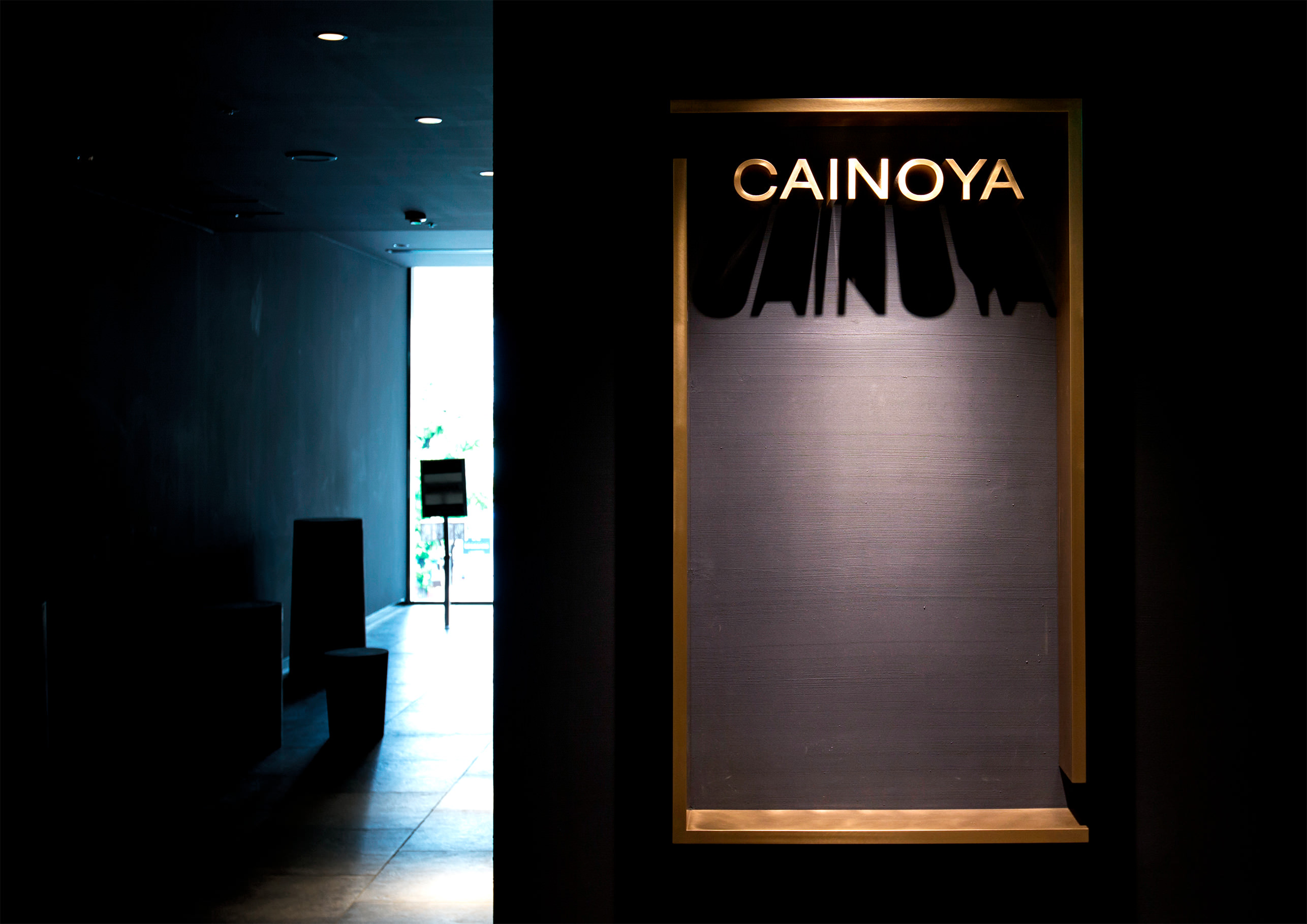 カイノヤは、シェフ塩澤隆由氏が日本をテーマにガストロノミーを追及し、旬の食材を極上の料理へと昇華させるレストラン。こだわりの演出にふさわしく、劇場のようなサインをイメージしてロゴをデザイン。食事後、その重厚なサインをバックに記念撮影するのが定番になっています。